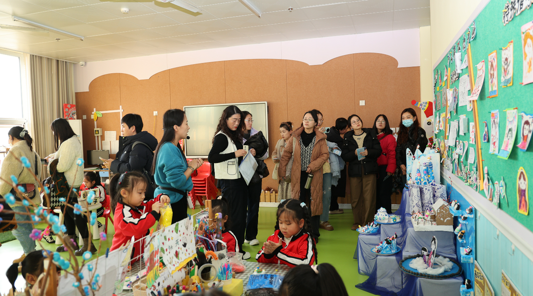 活动开篇,王老师以“花门搭建1.0——4.0”为主题进行案例汇报。通过视频回放、图文解析,生动呈现了幼儿在搭建区的自主探究过程。随后,在AI技术赋能课堂上,扈老师利用智能互动设备实时捕捉幼儿课堂反应,通过趣味答题、情景模拟等形式提升参与度;区域游戏中,积木区的空间建构、美工区的创意表达、益智区的思维挑战,充分展现了“玩中学”的教育理念;特色功能馆内,非遗手工等传统技艺展示,让幼教同仁们沉浸式感受园所多元化的教育场景。